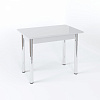 Длина прямоугольной столешницы - 90 см, с помощью механизма “бабочка” ее можно еще немного увеличить - до 1 м 20 см. Изготовлена она из сочетания ЛДСП и МДФ, сверху - закаленное окрашенное стекло. Возможны варианты с кожзамом, фотопечатью. Ноги прямые или гнутые, могут быть сделаны из хромированной стали или массива березы белого, кремового или цвета венге. В любой комбинации служат надежной опорой изделию даже в разложенном виде.