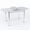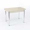 Раскладной кухонный стол со стеклом Стол Чикаго СТ МП 1100(1400)*680*750 Ноги прямые 02 гальваника (стекло Бежевое матовое цвет КР) - практичный и современный предмет мебели, который благодаря большому количеству модификаций подойдет к любому интерьеру и будет долго служить вашей семье.